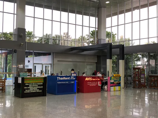 在楠府機場進入市區可以使用雙條、計程車(往返市區約1–200)和租車,可以多比較幾個租車平台,我們從Economic Car Rental預訂單日925銖,看到Thai Rent a Car優惠促銷499銖,價差快一倍。