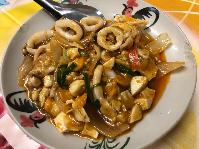 第1天到楠府已經是晚上,在街上的Pum 3 Restaurant(ร้าน ปุ้ม 3)覓食,點了鹹蛋魷魚、炸滷腸、炒青菜和百果魚片,菜色和口感屬於中式料理,但是很合我的口味。