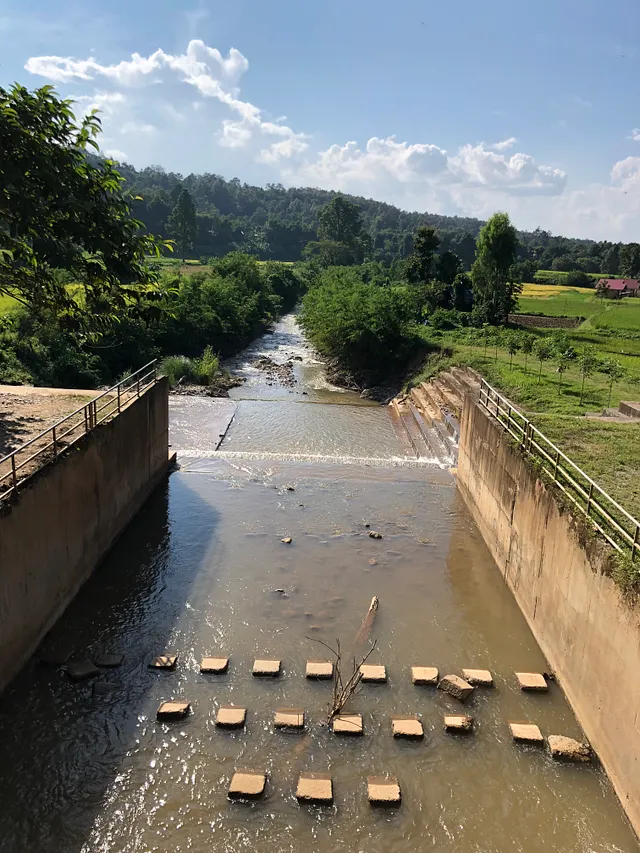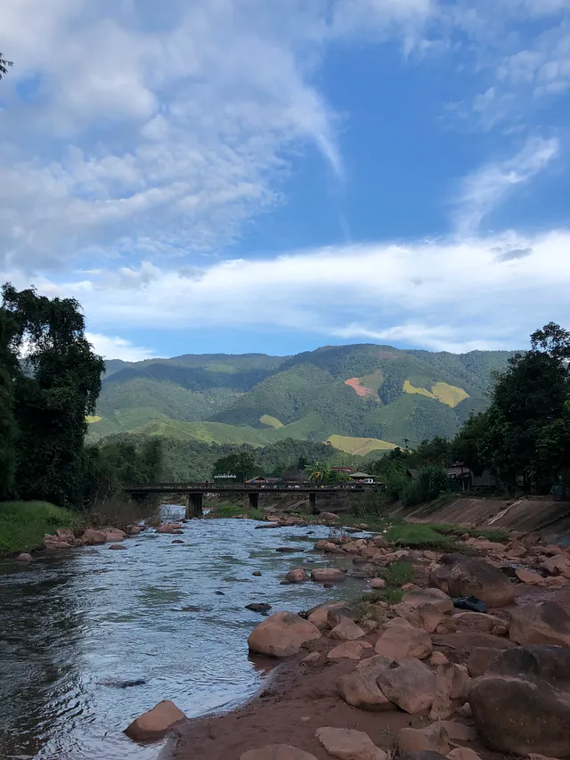 隨後轉往1081公路,目的地就是世界唯一高山岩鹽礦的鹽村Bo Kluea Rock Salt Pond (บ่อเกลือสินเธาว์ภูเขา),停好車往製鹽村落走一小段,可惜製鹽過程今日公休,村落內三三兩兩的賣著紀念品和鹽巴,我們也沒興趣,就到村落旁的河流玩著水。