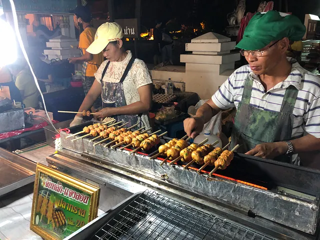100公里的夜間山路鮮少有路燈,大概開了3個小時左右才回到市區,恰好遇到楠府週末夜市 (ถนนคนเดินกลางคืนน่าน),立馬停車加入夜市的行列。