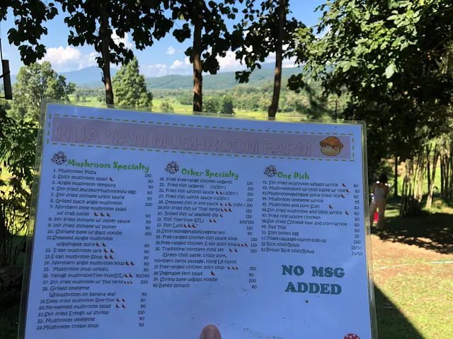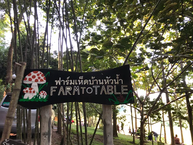 因為找不到合適的發呆亭,所以我們就決定轉移陣地到香菇農場Huanam Mushroom Farm (ฟาร์มเห็ดบ้านหัวน้ำ)吃午餐,不過因為假日關係,農場人車擁擠,入口處前大約1公里就開始有人路邊停車,沿途蜿蜒崎嶇小路,但真正進入門口後就是一片開闊。