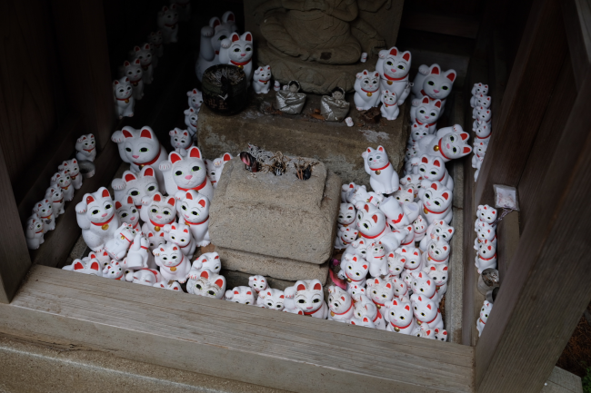 東京世田谷區的豪德寺,傳說是招財貓的發源地,寺廟裡各個角落擺滿著招財貓 到這邊可以排隊買御守或者是招財貓(有不同的尺寸,但每人只能限購一隻) 可以像它許願如果願望達成再待著它回到寺廟放在那邊 招財貓 舉左手:招財運 舉右手:招福氣