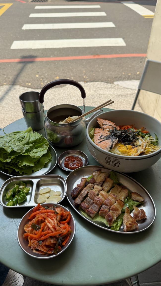 新竹東門市場4.8坪 拌飯料多、吃起來很滿足! 一定要拿拌飯醬~味道更有層次 魚板湯、生菜包肉也無雷 加上青辣椒與蒜頭根本停不下來(˶‾᷄ ⁻̫ ‾᷅˵)