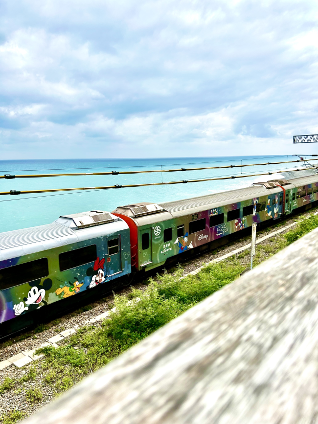 台東多良火車站 火車駛過出現可愛的米奇車廂 真的會瘋狂耶❤️ 太可愛了 有經過台東的可以下車看看 火車、天空、海岸線這樣連成一線 真的很美