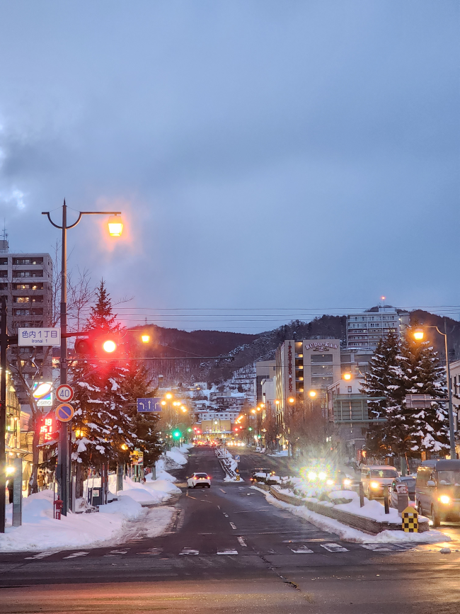 橘黃色的路燈將日落後的小樽增添一抹色彩,儘管氣溫低到足夠下雪,但萬家燈火仍然讓人感到溫暖