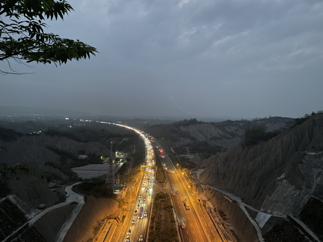 夜晚時分,燈光閃爍的車流在國道三號蜿蜒而過,非常適合攝影愛好者前來取景。