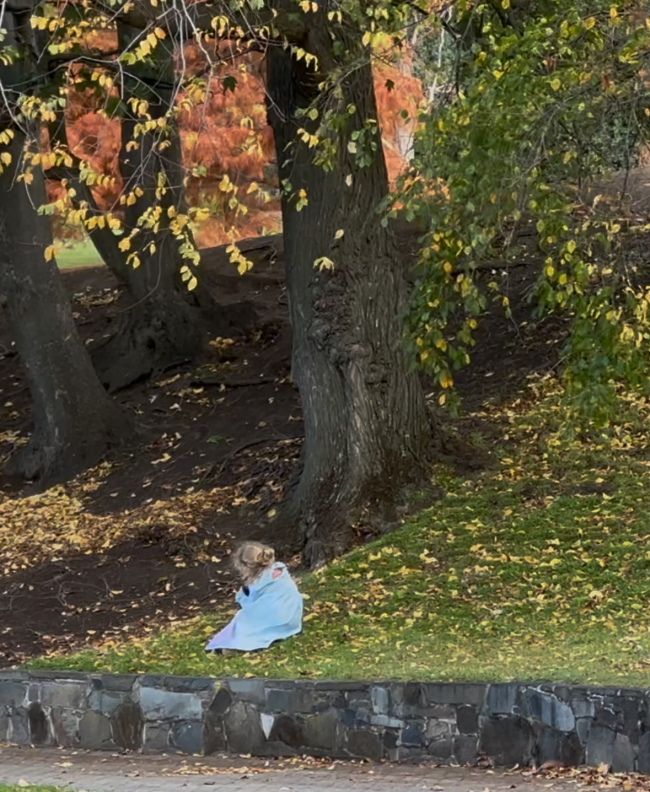 捕捉到在秋葉紛飛下 兩個siblings一同遊玩自然的互動