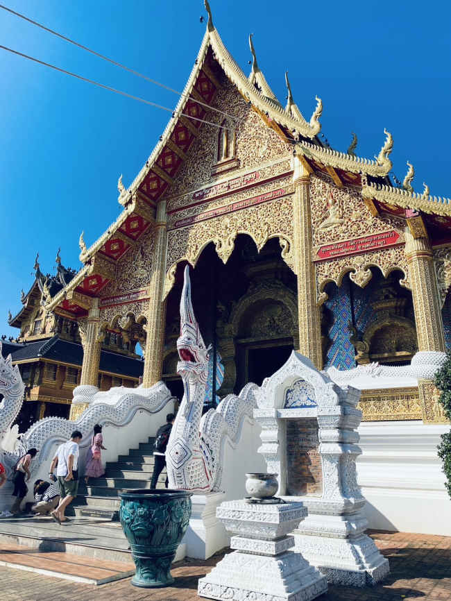 從其精緻的金色雕飾、飛簷翹角與色彩斑斕的裝飾圖騰來看