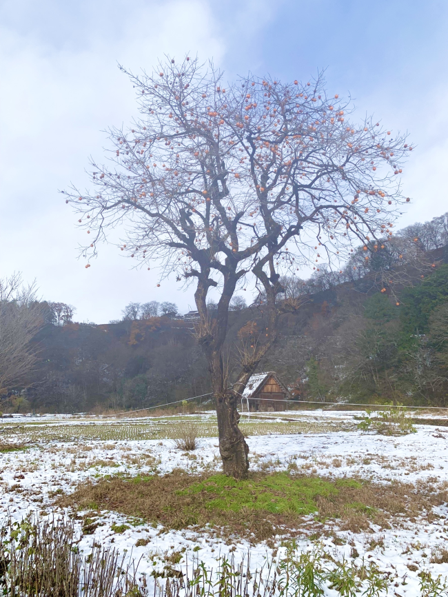 在白川鄉合掌村外圍的一處雪田裡, 我遇見了一棵孤獨卻迷人的柿子樹。