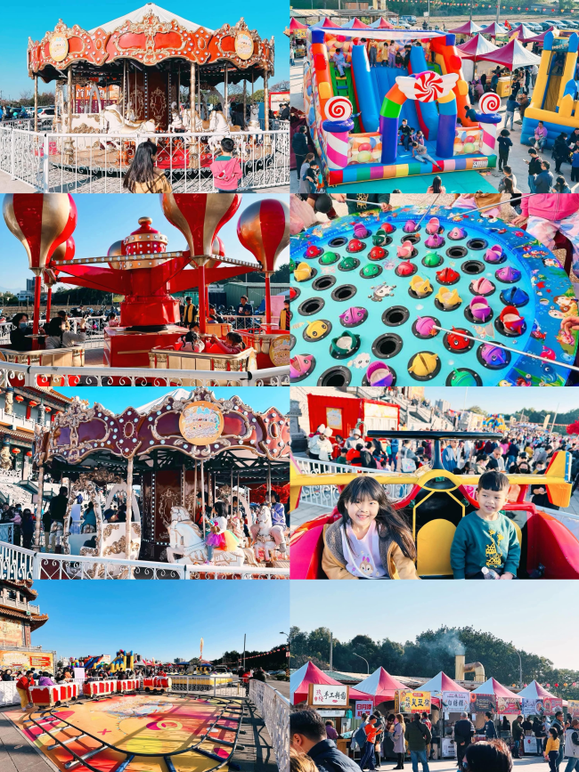 《#桃園太子遊樂園》 🩶地址:桃園市桃園區國際路一段401巷123號(🔍桃園護國宮) ⏰開放時間:初一1/29(三)~初五2/2(日) 早上9點到晚上7點30 ☎️電話:03-3620599;03-3677405 🅿️停車:免費停車場(從國際路進去路比較大條) 🚾廁所非常乾淨