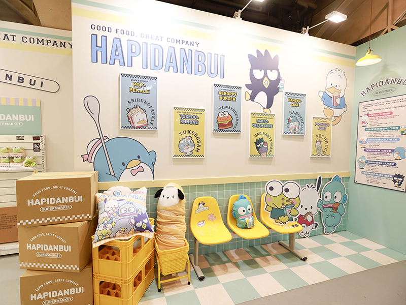 由楽玩多WAYTOFUN主辦的「三麗鷗男團HAPIDANBUI」快閃店,6月28日起於台北華山1914文化創意產業園區中4A館盛大登場。這次以「美系超市」為主題設計,清新繽紛的氛圍加上偶像男團的魅力,讓現場瞬間成為粉絲心中的夢幻舞台。