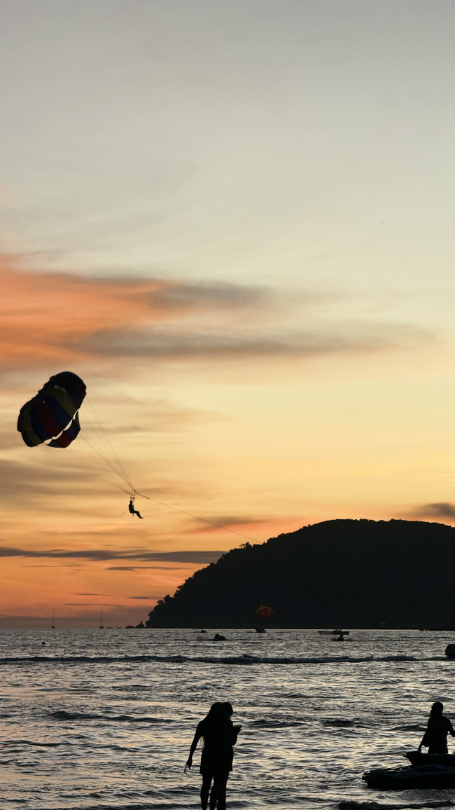 亞庇的日落是我見過最有層次的顏色✨ 從金黃到粉橘再到紫藍,像被溫柔包圍的一場夢。 📍Tanjung Aru Beach #亞庇必去 #日落控的天堂 #海邊散步好地方